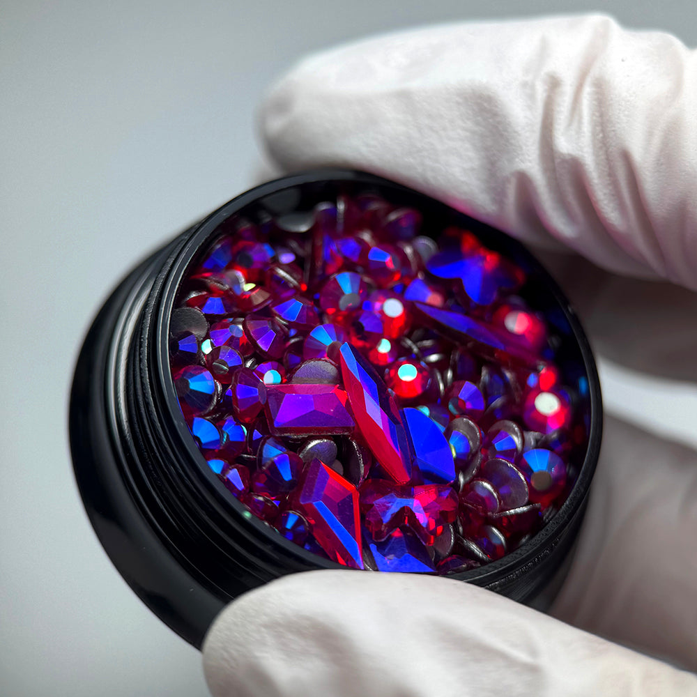 These rhinestones are packaged in a practical, resealable box, so you always have them at hand. The set includes 100 classic, round rhinestones in various sizes and 10 large, irregular shapes. Thanks to this combination, you can create real jewellery on your nails, full of shine and unique character.