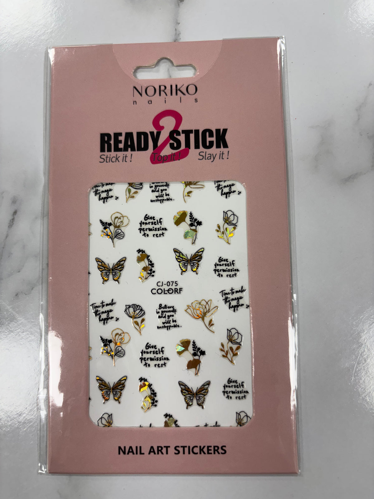 Noriko Ready2Stick are self-adhesive nail art stickers. They are designed for creating quick and easy nail designs and can be used with various nail products including gel, acrylic, or even regular nail polish.