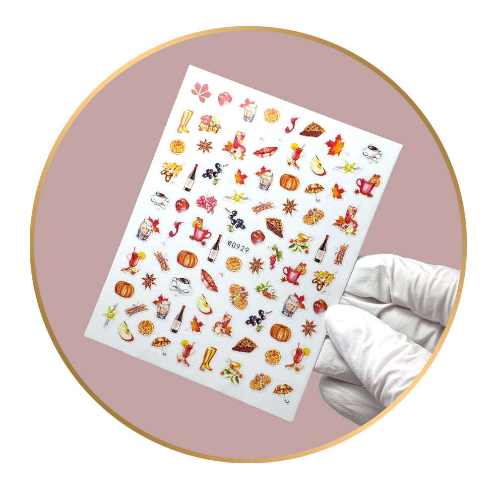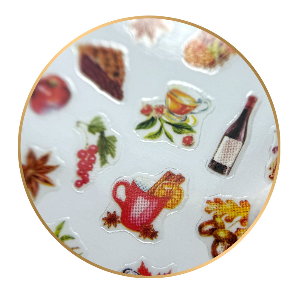 This set contains autumnal designs including pumpkins, pies, apples, wine and coffee.